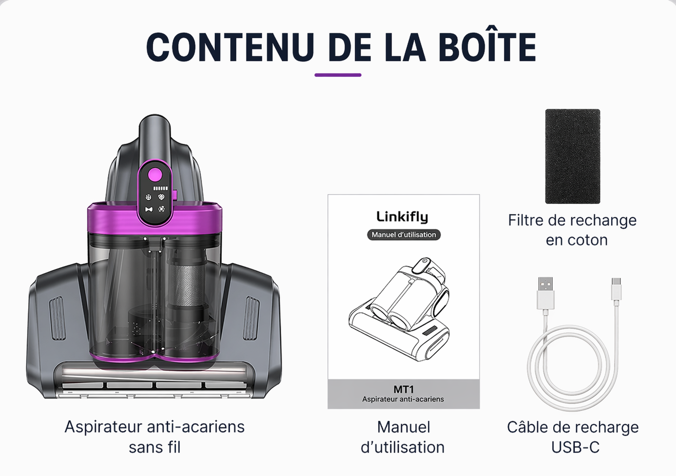 Aspirateur Linkifly MT1 anti-acariens sans fil UV – matelas, canapé et textiles